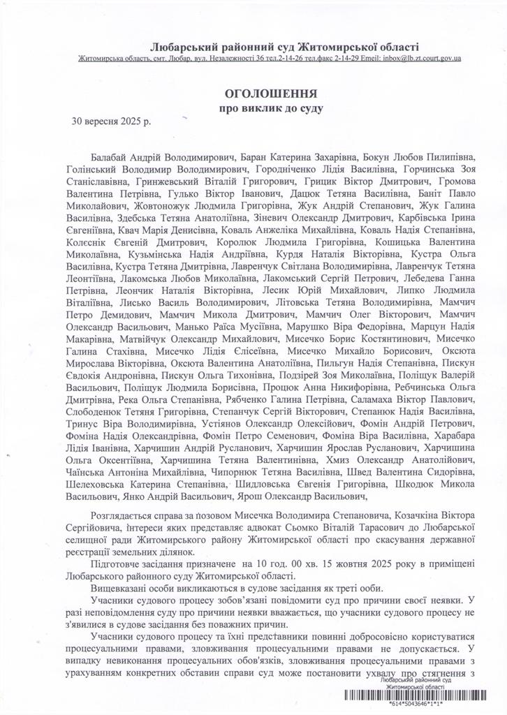 Оголошення про виклик осіб до суду