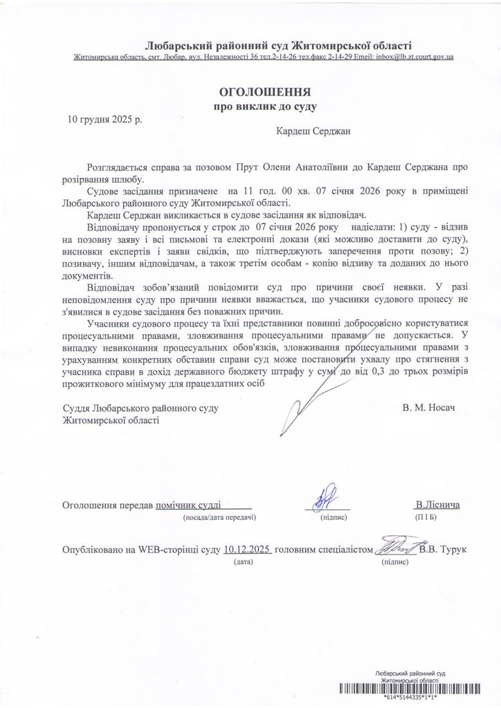 Любарський районний суд Житомирської області