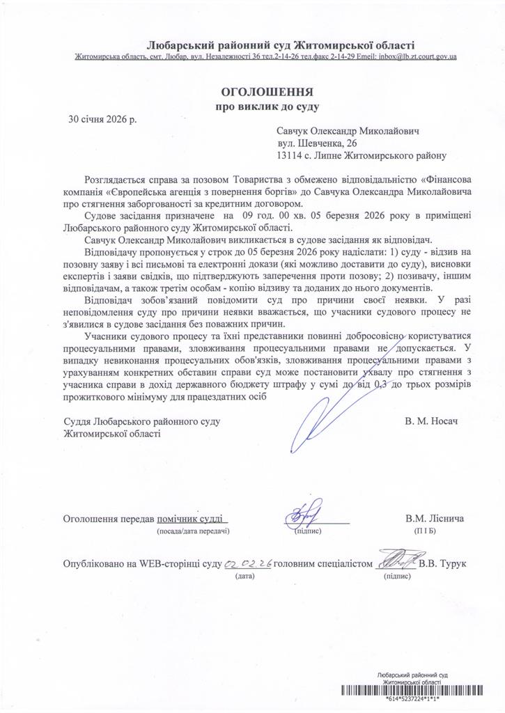 Любарський районний суд Житомирської області