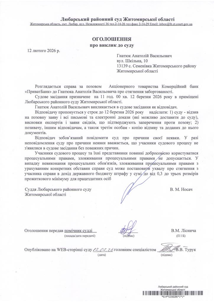 Любарський районний суд Житомирської області