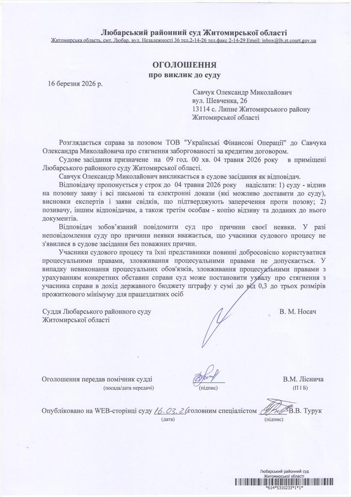 Любарський районний суд Житомирської області
